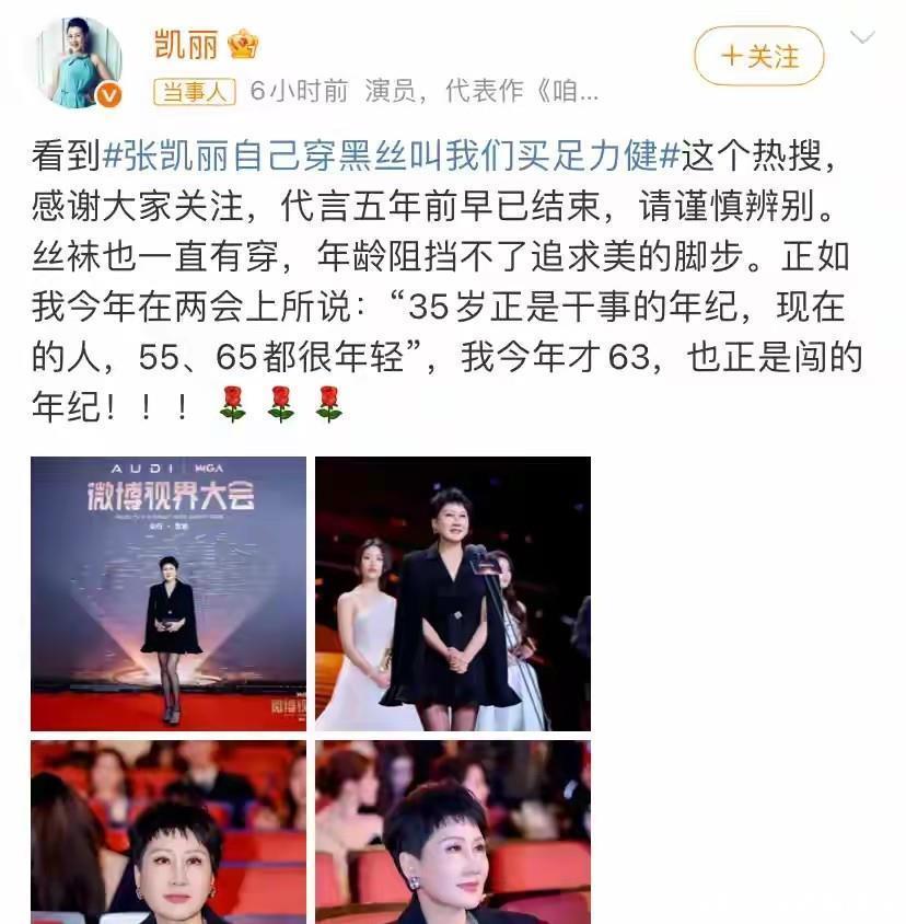面对持续发酵的舆论,张凯丽的回应堪称典范。她首先感谢大家的关注,随后澄清两大关键事实:代言早已结束,请公众谨慎辨别信息;丝袜自己一直有穿,年龄阻挡不了追求美的脚步。尤为值得一提的是,她巧妙地引用了自己今年在两会上关于年龄观点的发言:“35岁正是干事的年纪,现在的人,55、65都很年轻”,并自信宣称“我今年才63,也正是闯的年纪!”这一表态直接将话题从“穿衣争议”升华到“年龄观念”的层面,展现出她对年龄偏见的深刻洞察与勇敢挑战。